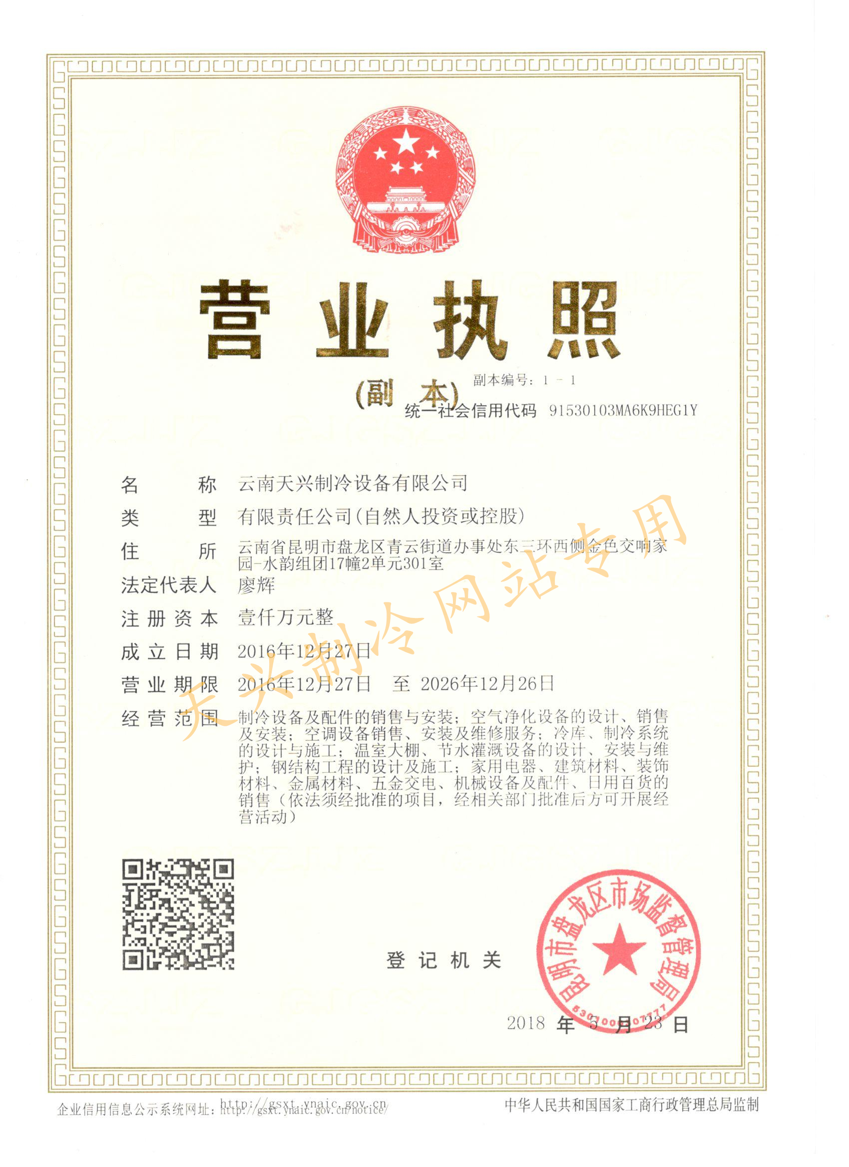 云南天興制冷設(shè)備有限公司位于云南省省會城市昆明,是一家專業(yè)從事冷庫設(shè)計、生產(chǎn)、安裝及技術(shù)服務(wù)為一體的綜合型企業(yè)。公司秉承“品質(zhì)為本,信譽(yù)第一”的經(jīng)營理念,承建了一大批速凍庫、冷藏庫、保鮮庫、鹽水池、超市展示柜、凈化無菌間等高品質(zhì)工程。